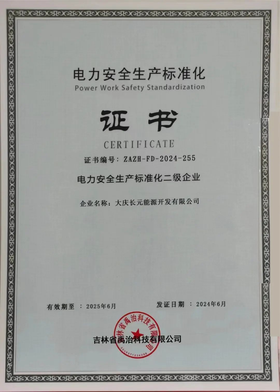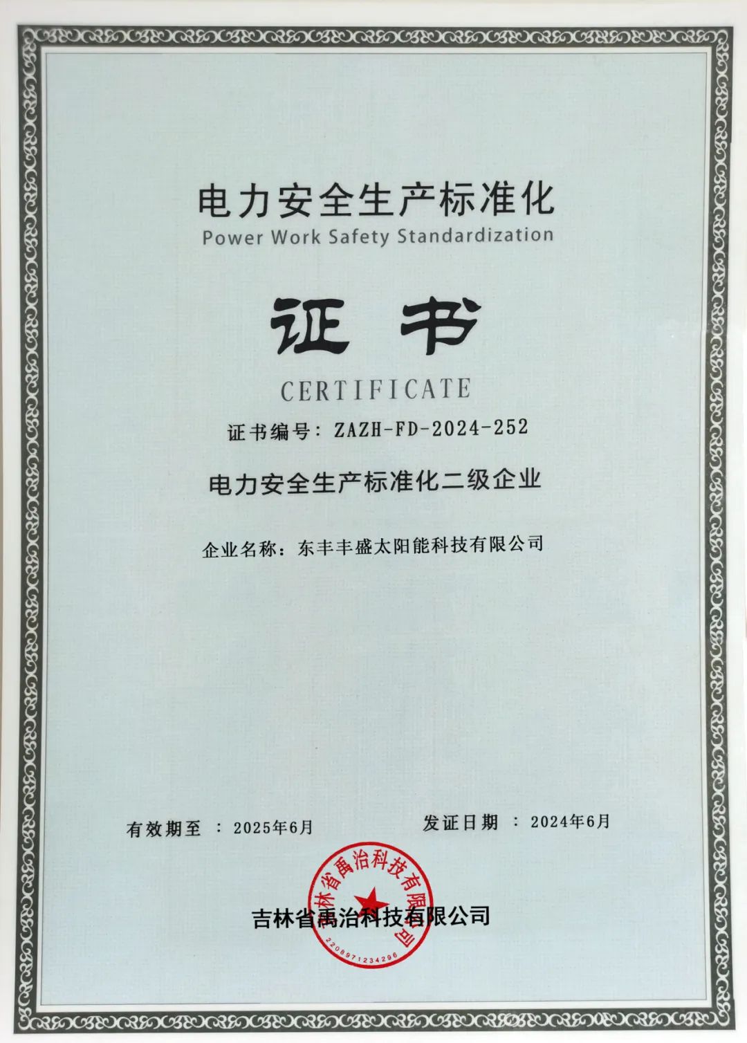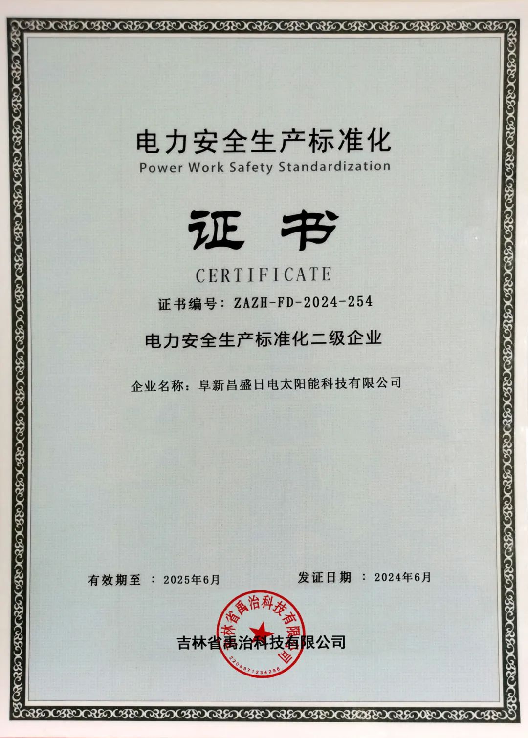 近日,乐动(中国)旗下新能源集团所属的三家项目公司阜新昌盛日电太阳能科技有限公司、东丰丰盛太阳能科技有限公司和大庆长元能源开发有限公司,成功通过了电力安全生产标准化企业二级达标认证,并荣获了电力安全生产标准化二级企业证书。这一成就是青岛城投新能源集团在安全生产标准化和安全管理体系建设方面取得的重要进展。