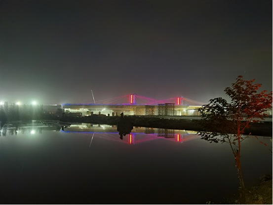 在介绍工程概况及转体筹备情况后,随着现场指挥长的一声令下,23点30,青岛新机场高速连接线工程跨铁路转体桥开始缓缓转动,历时约90分钟,在11月4日凌晨0时59分,世界最大跨度耐候钢跨铁路钢箱梁圆满完成空中转体。该项关键控制性节点的打通,意味着青岛新机场高速连接线建设取得了里程碑式的进展,为工程全线贯通打下坚实基础。