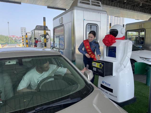 (图为首批司乘体验人型智能车道收费机器人)