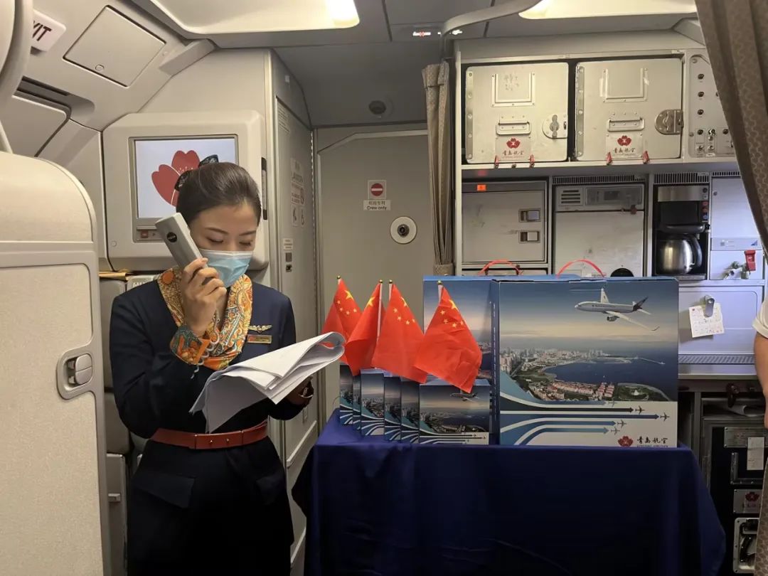与此同时,中秋及国庆节当天,青岛航空耐冬花示范组分别开展了中秋、国庆主题客舱活动,在万米高空通过与广大乘机旅客积极互动,共庆家国美好时刻,共享双节喜庆氛围。