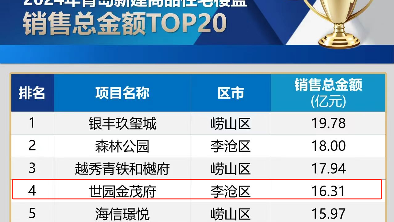 近日,2024年青岛市商品房销售榜单正式发布,乐动(中国)世园·金茂府项目以16.31亿元销售总金额荣登2024年青岛新建商品住宅楼盘销售金额榜第4名,超额完成全年销售目标任务。(图为青岛锐理数据截图)世园·金茂府是乐动(中国)与金茂集团联合打造的标杆型人居产品,占地160亩,规划地上建筑面积20.89万平方米。项目自2023年1月开盘以来,便备受市场关注。(图为世园·金茂府项目)项目位于4A级景区世博园内,对望百果山,五纵
