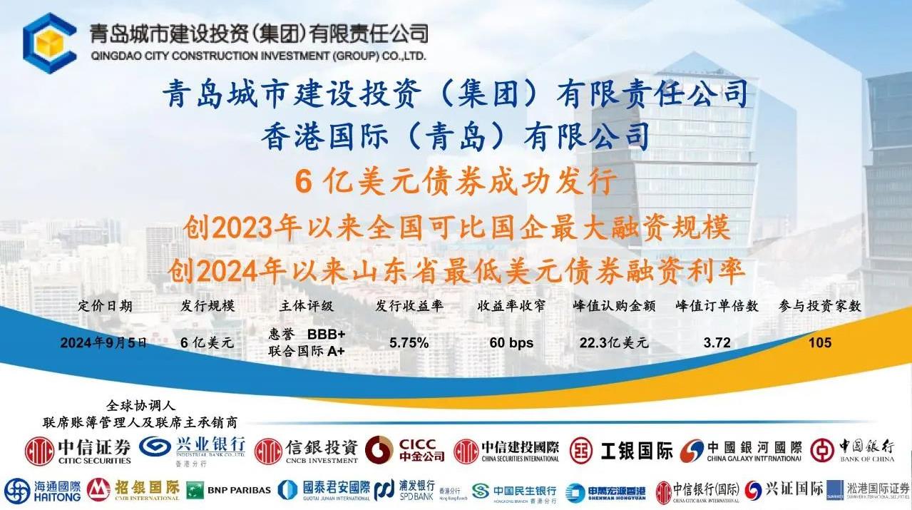 创两“最”!青岛城投6亿美元债券成功发行