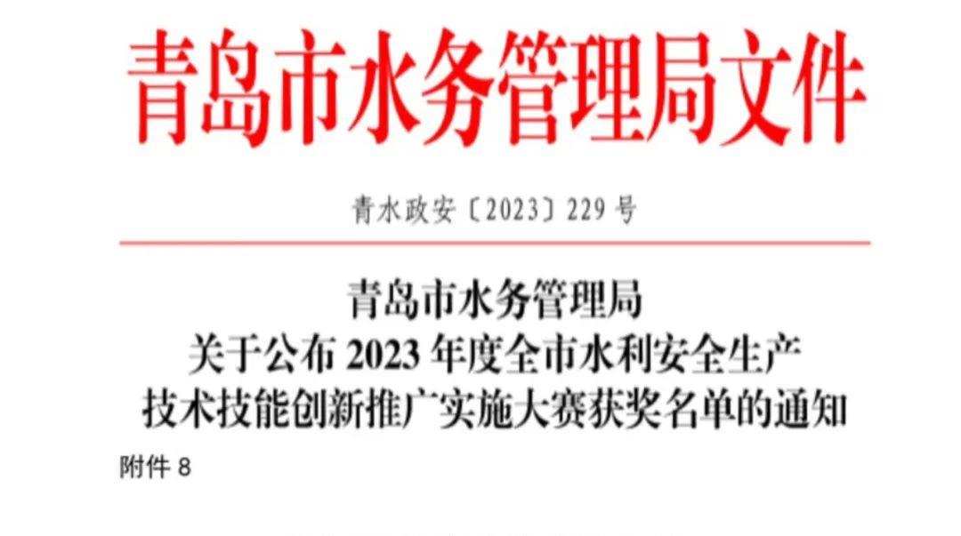 近日,青岛市水务管理局印发《乐动在线注册公布2023年度全市水利安全生产技术技能创新推广实施大赛获奖名单的通知》,乐动(中国)官路水库公司荣获“2023年度全市水利安全生产技术技能创新推广实施大赛特别贡献奖”。(图为部分获奖名单)水利安全生产技术技能创新推广实施大赛是深入贯彻落实习近平总书记“十六字”治水思路和乐动在线注册治水兴水重要讲话批示指示精神的具体举措;是推动《山东省黄河流域生态保护和高质量发展规划》全面实施、