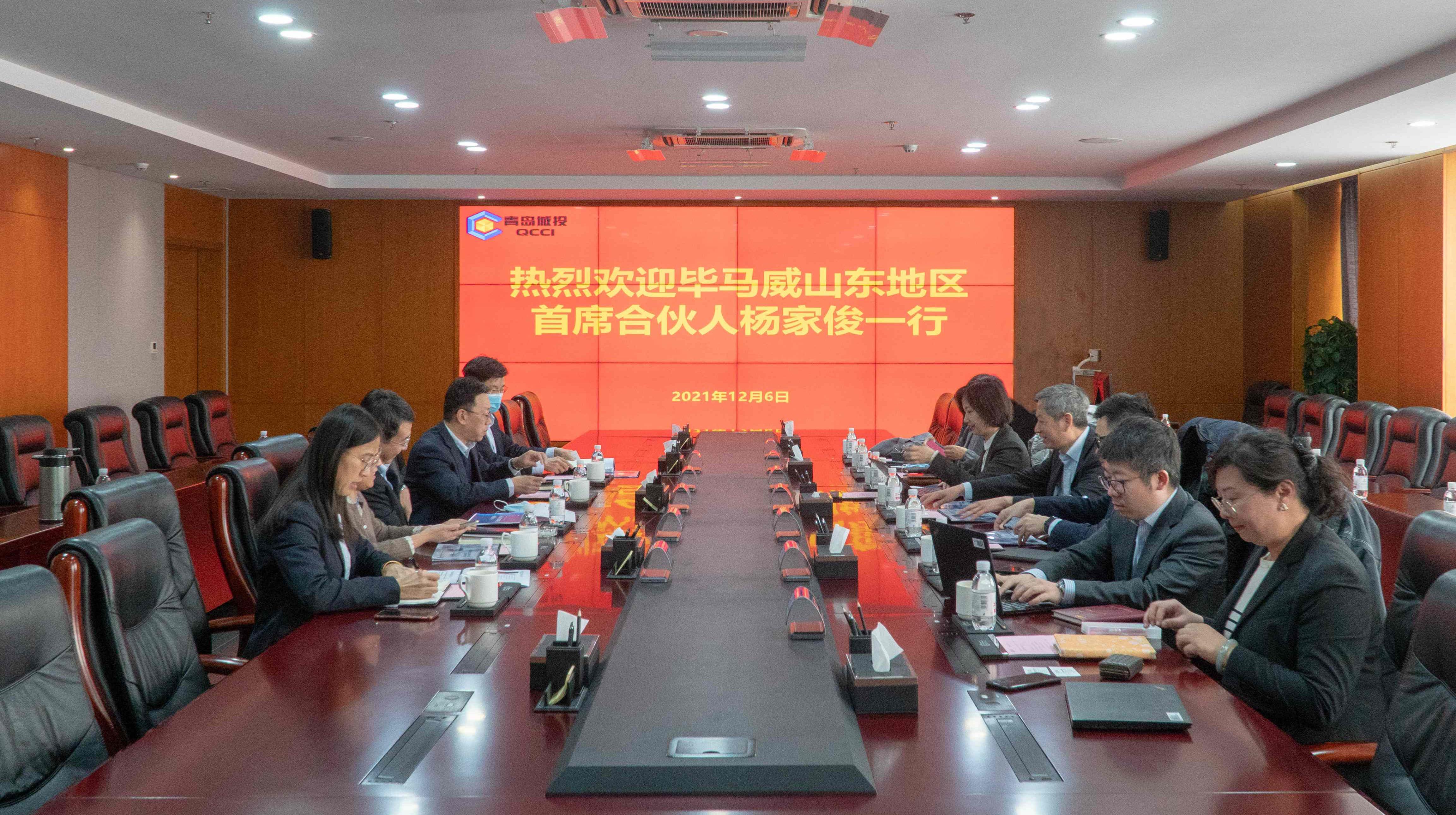 12月6日,毕马威山东地区首席合伙人杨家俊一行来城投集团访问。城投集团党委书记、董事长陈明东,党委委